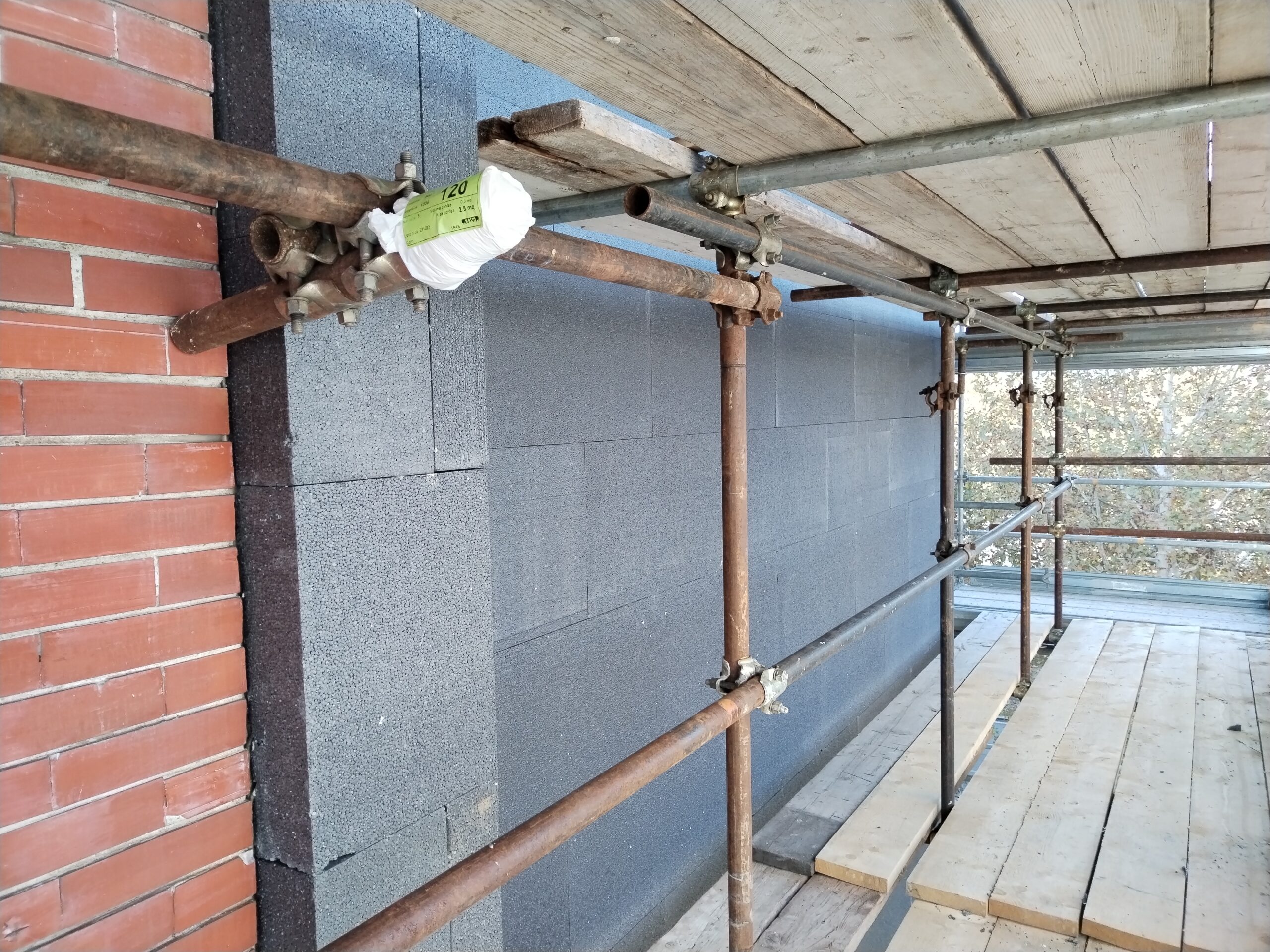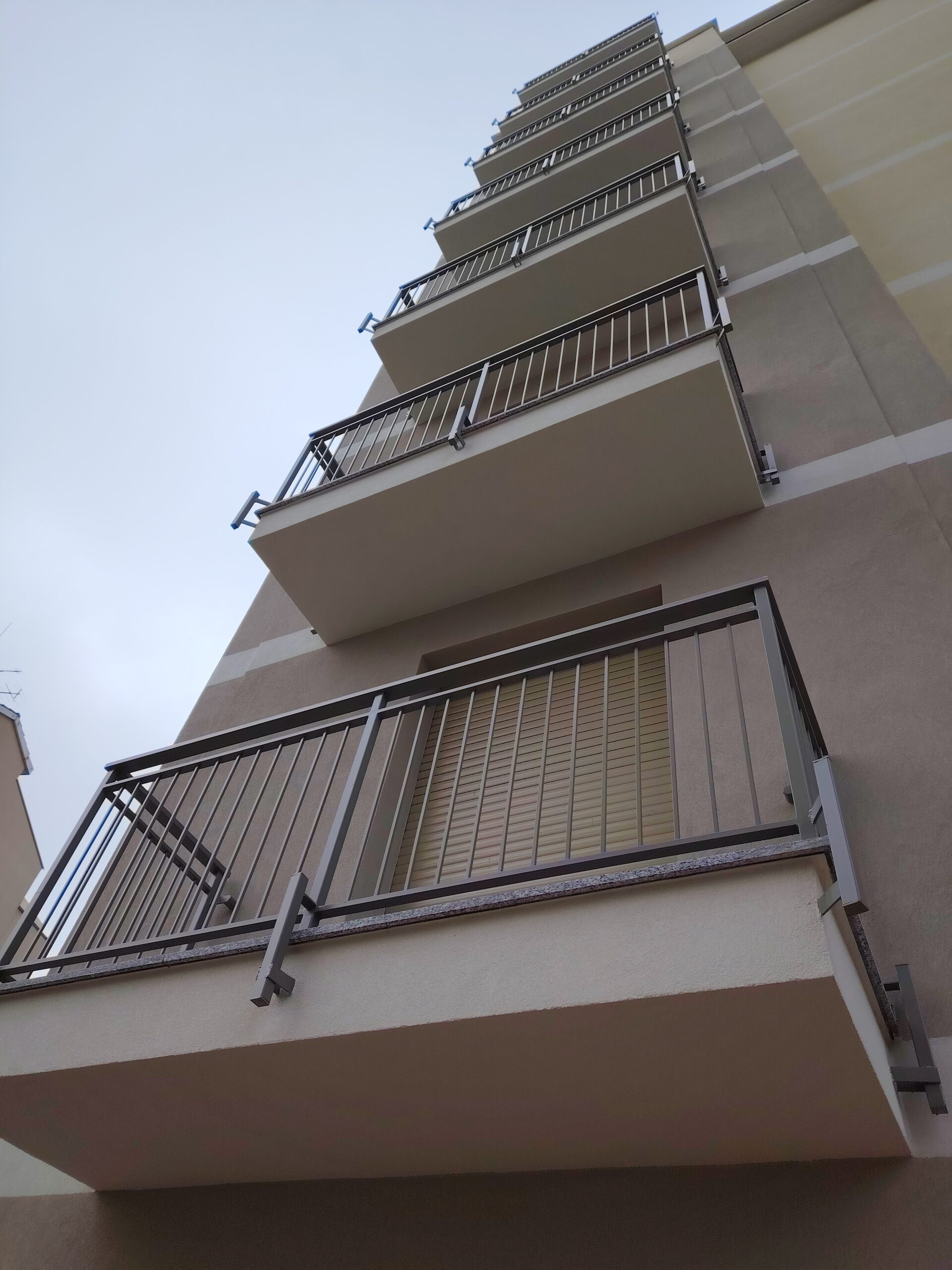 Per affrontare le sfide energetiche e strutturali, l’impresa ha adottato un approccio sistemico. In primo luogo, abbiamo proceduto al rifacimento della copertura, sostituendo la vecchia struttura con un nuovo pacchetto coibentato ad alta performance. Successivamente, l’intero involucro perimetrale è stato rivestito con un sistema a cappotto termico certificato, che ha drasticamente ridotto le dispersioni e migliorato l’inerzia termica dell’edificio. Parallelamente a questi interventi di efficientamento, abbiamo eseguito un ripristino conservativo e strutturale di tutti i balconi, intervenendo sulle solette, sui frontalini e sulle ringhiere. Questa soluzione integrata ha permesso al condominio di raggiungere una classe energetica superiore, garantendo al contempo la massima sicurezza strutturale e un completo rinnovamento estetico dell’edificio.