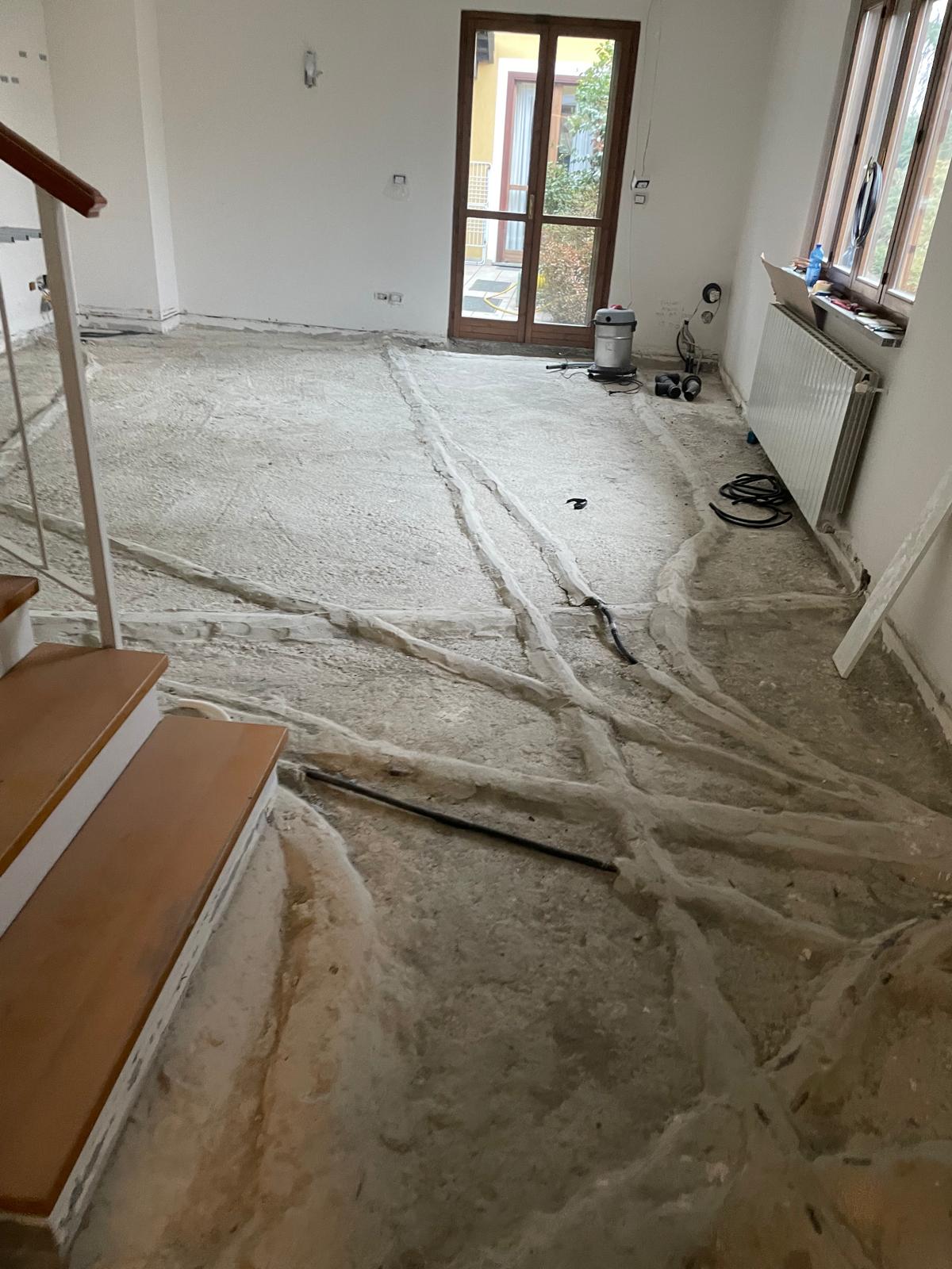 Interni: Demolizione e rifacimento delle pavimentazioni interne per un ammodernamento stilistico degli ambienti.