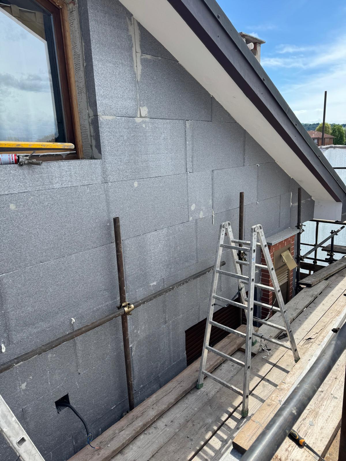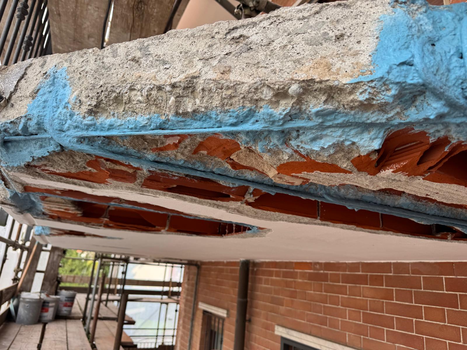 Per affrontare il degrado strutturale dei balconi, l’impresa ha eseguito un profondo intervento di deumidificazione e ripristino conservativo. Abbiamo rimosso tutte le porzioni di calcestruzzo distaccate, trattato le armature corrose e ricostruito integralmente i frontalini e le solette con malte fibrorinforzate e cicli epossidici specifici, restituendo piena sicurezza e durabilità. Parallelamente, il tetto è stato integralmente rifatto con l’inserimento di un pacchetto coibentato per massimizzare l’isolamento termico. L’intero edificio è stato infine oggetto di una riqualificazione estetica esterna che, attraverso l’applicazione di intonaci specifici e nuove colorazioni, ha restituito eleganza e contemporaneità all’intero fabbricato.