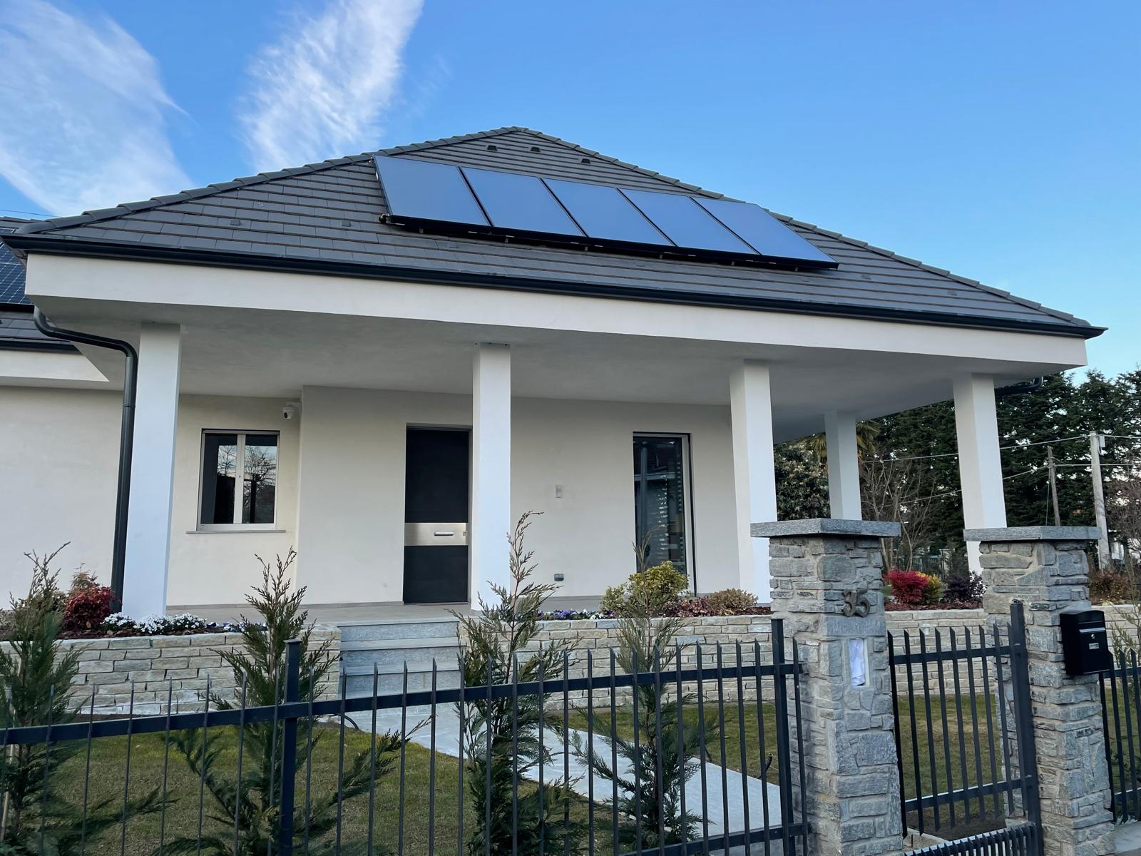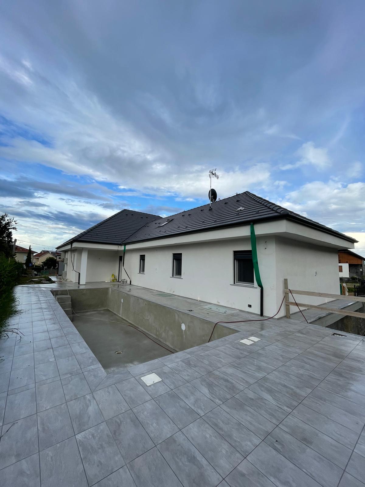 Per rispondere all’esigenza di efficientamento, abbiamo proceduto al completo rifacimento del tetto: abbiamo rimosso le vecchie tegole in cotto e installato un pacchetto isolante ad altissime prestazioni per la coibentazione, sigillato poi da un moderno e durevole manto di copertura in tegole di cemento, che garantisce eleganza estetica e resistenza. Sulla nuova copertura è stato inoltre integrato un impianto fotovoltaico per la produzione di energia pulita, massimizzando l’autosufficienza energetica dell’immobile. Contemporaneamente, abbiamo eseguito il rifacimento integrale delle facciate con materiali isolanti e finiture estetiche moderne. L’intervento è stato completato con la progettazione e la realizzazione di una piscina interrata su misura, dotata di tutti gli impianti necessari, trasformando il giardino in un ambiente elegante e funzionale.